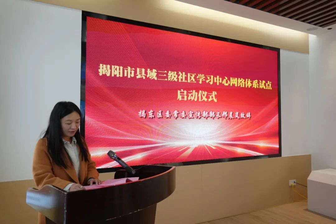 1月23日,揭阳市县域三级社区学习中心网络体系试点工作启动仪式在我区云路镇新时代文明实践所举行。市委宣传部副部长、市文明办主任郭攀,区委常委、宣传部部长邢晨岚,市教育局、榕城区委宣传部有关负责同志共同启动项目,标志着揭东区、榕城区作为全市首批试点单位,正式启动县(市、区)社区教育学院—乡镇(街道)社区学校—村(社区)教学站(点)三级社区学习中心网络体系探索工作,进一步打通终身学习资源壁垒,推动优质教育服务下沉基层,提高居民综合素质。